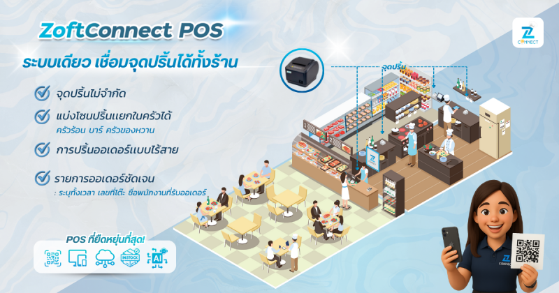 ZoftConnect POS เป็นระบบเดียวที่ ครอบคลุมทั้งร้านแบบครบวงจร ไม่ต้องกังวลเรื่องร้านใหญ่ หลายโซน หลายจุด เพราะสามารถขยายระบบได้ตามขนาดร้าน โดยไม่เพิ่มความยุ่งยาก